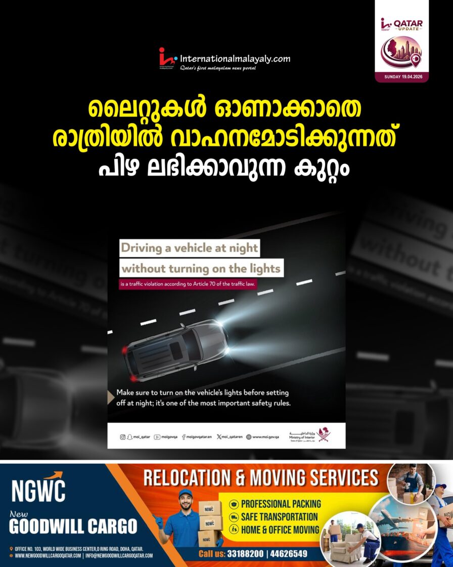 ഗതാഗത നിയമത്തിലെ ആര്ട്ടിക്കിള് 70 അനുസരിച്ച്, രാത്രിയില് വാഹനമോടിക്കുന്നതിന് മുമ്പ് വാഹനത്തിലെ ലൈറ്റുകള് പ്രവര്ത്തനക്ഷമമാണെന്നും സ്വിച്ച് ഓണ് ആണെന്നും ഉറപ്പാക്കണമെന്ന് ആഭ്യന്തര മന്ത്രാലയം ഡ്രൈവര്മാരോട് ആവശ്യപ്പെട്ടു.