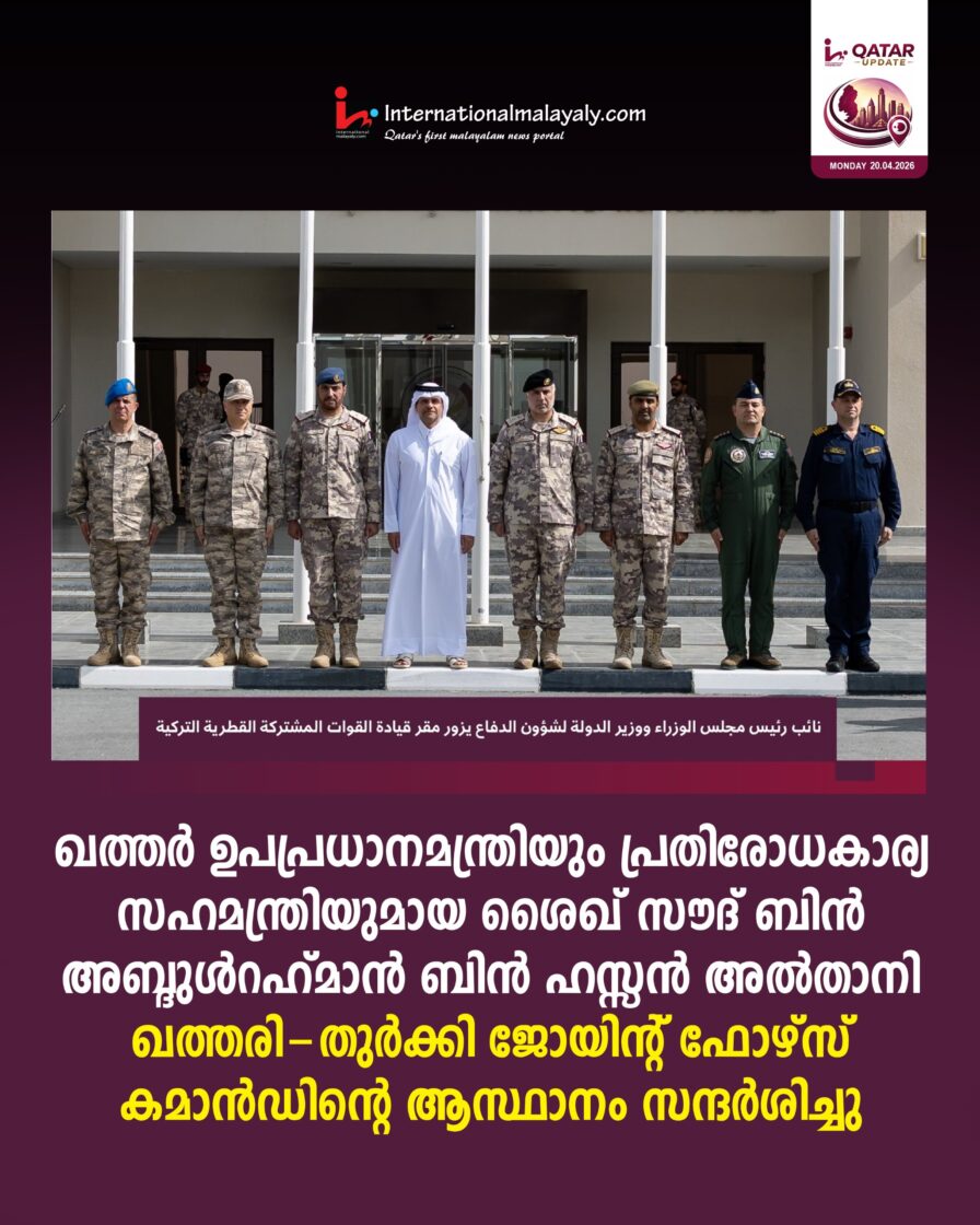 ഖത്തര് ഉപപ്രധാനമന്ത്രിയും പ്രതിരോധകാര്യ സഹമന്ത്രിയുമായ ശൈഖ് സൗദ് ബിന് അബ്ദുള്റഹ്മാന് ബിന് ഹസ്സന് അല്താനി ഖത്തരി-തുര്ക്കി ജോയിന്റ് ഫോഴ്സ് കമാന്ഡിന്റെ ആസ്ഥാനം സന്ദര്ശിച്ചു