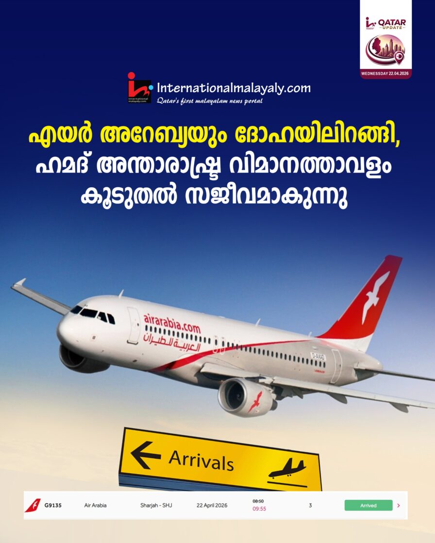 രാവിലെ 9.55 നാണ് നിറയെ ആളുകളുമായി എയര് അറേബ്യയുടെ ജി 9135 വിമാനം ഹമദ് അന്താരാഷ്ട്ര വിമാനത്താവളത്തിലിറങ്ങിയത്.