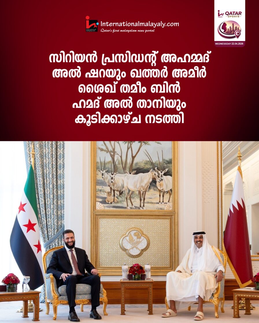 സിറിയന് പ്രസിഡന്റ് അഹമ്മദ് അല് ഷറയും ഖത്തര് അമീര് ശൈഖ് തമീം ബിന് ഹമദ് അല് താനിയും കൂടിക്കാഴ്ച നടത്തി