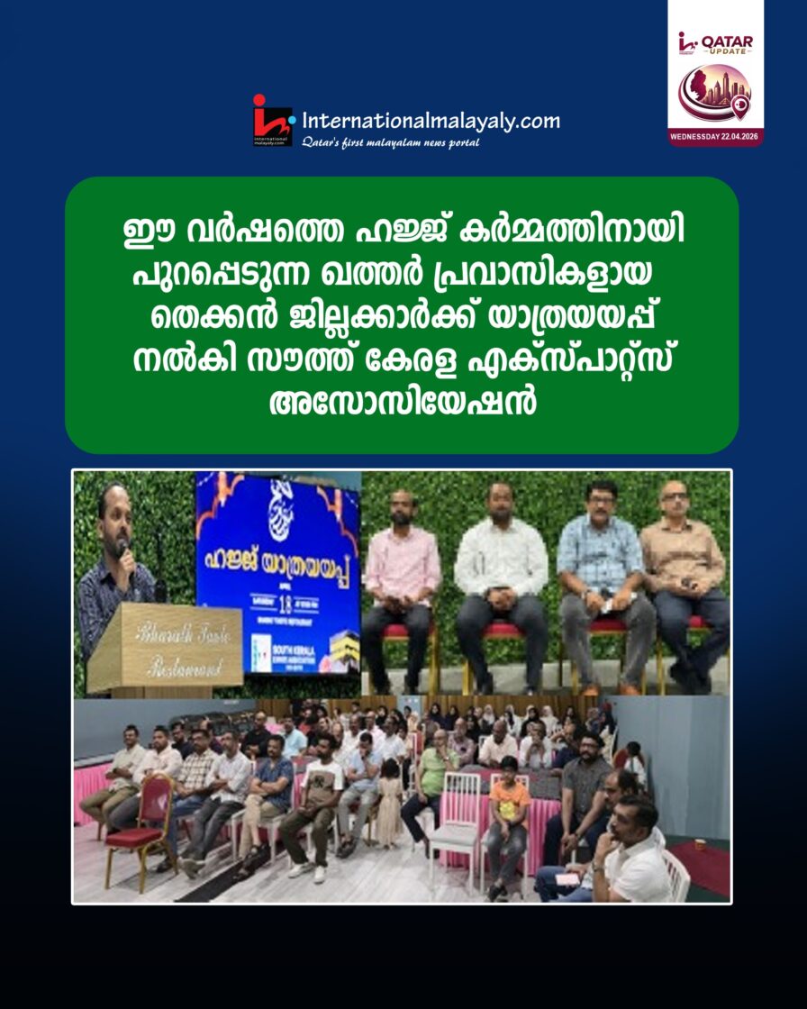 ഈ വര്ഷത്തെ ഹജ്ജ് കര്മ്മത്തിനായി പുറപ്പെടുന്ന ഖത്തര് പ്രവാസികളായ തെക്കന് ജില്ലക്കാര്ക്ക് യാത്രയയപ്പ് നല്കി