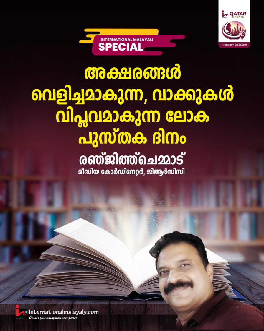 ഈ ലോക പുസ്തക ദിനത്തില്, നമുക്ക് വായനയെ ജീവിതത്തിന്റെ ഭാഗമാക്കാം. ഒരു പുതിയ പുസ്തകം കയ്യിലെടുക്കാനും അതിലെ വരികള്ക്കിടയിലൂടെ അറിവിന്റെയും ഭാവനയുടെയും ലോകം തേടി യാത്ര ചെയ്യാനും നമുക്ക് സാധിക്കട്ടെ. ഓരോ പുസ്തകവും ഒരു പുതിയ വാതായനങ്ങളാണെന്നും അതിലൂടെ കാണുന്നത് പുതിയൊരു ആകാശമാണെന്നും ഓര്മ്മിച്ചുകൊണ്ട് ഏവര്ക്കും ഹൃദയം നിറഞ്ഞ ലോക പുസ്തക ദിനാശംസകള് നേരുന്നു. അക്ഷരങ്ങളുടെ വെളിച്ചം നമ്മെ നയിക്കട്ടെ.