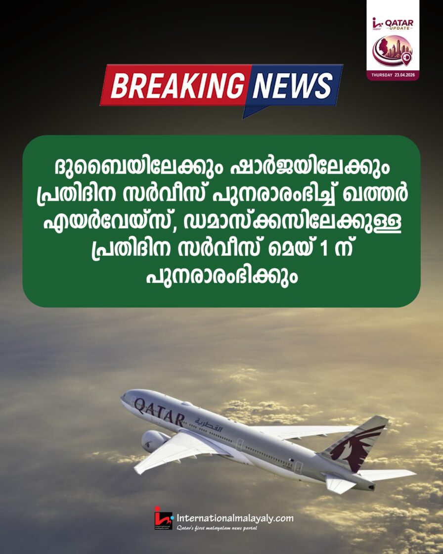 ദുബൈയിലേക്കും ഷാര്ജയിലേക്കും പ്രതിദിന സര്വീസ് പുനരാരംഭിച്ച് ഖത്തര് എയര്വേയ്സ് , ഡമാസ്ക്കസിലേക്കുള്ള പ്രതിദിന സര്വീസ് മെയ് 1 ന് പുനരാരംഭിക്കും