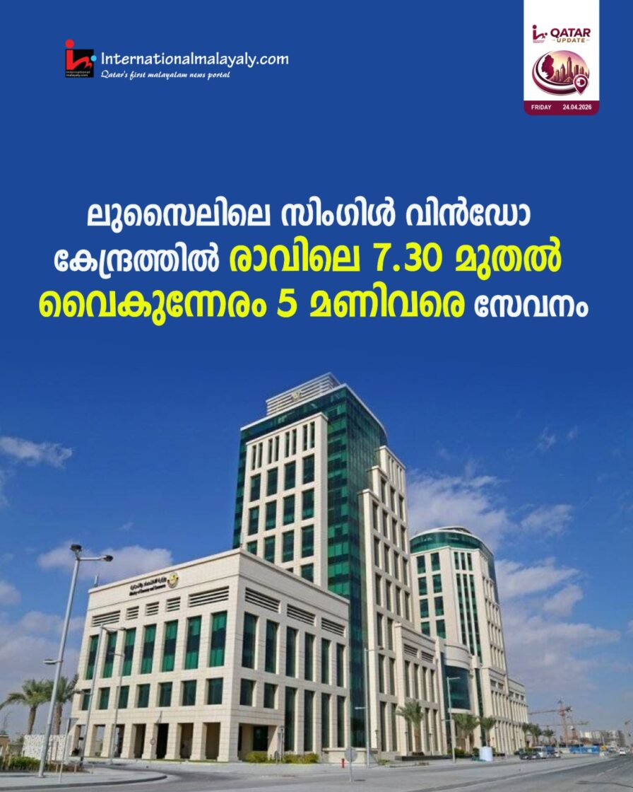 ലുസൈലിലെ സിംഗിള് വിന്ഡോ കേന്ദ്രത്തില് രാവിലെ 7.30 മുതല് വൈകുന്നേരം 5 മണിവരെ സേവനം
