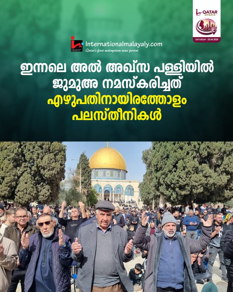 ഇന്നലെ അല് അഖ്സ പള്ളിയില് ജുമുഅ നമസ്കരിച്ചത് എഴുപതിനായിരത്തോളം പലസ്തീനികള്