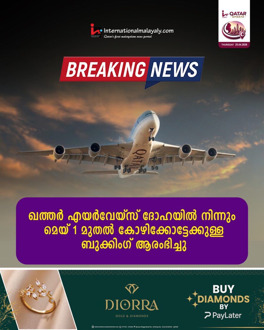 ഖത്തര് എയര്വേയ്സ് ദോഹയില് നിന്നും മെയ് 1 മുതല് കോഴിക്കോട്ടേക്കുള്ള ബുക്കിംഗ് ആരംഭിച്ചു