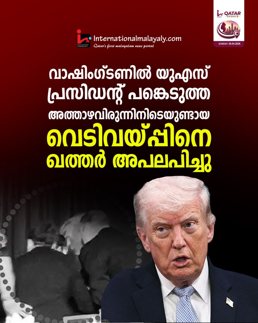 വാഷിംഗ്ടണില് യുഎസ് പ്രസിഡന്റ് പങ്കെടുത്ത അത്താഴവിരുന്നിനിടെയുണ്ടായ വെടിവയ്പ്പിനെ ഖത്തര് അപലപിച്ചു