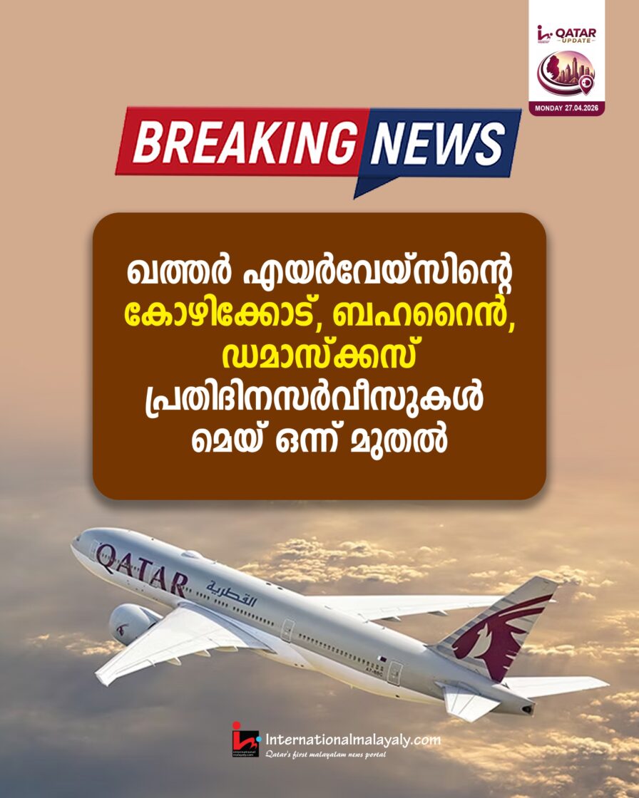 ഖത്തര് എയര്വേയ്സിന്റെ കോഴിക്കോട്, ബഹറൈന്, ഡമാസ്ക്കസ് പ്രതിദിനസര്വീസുകള് മെയ് ഒന്ന് മുതല് പുനരാരംഭിക്കും