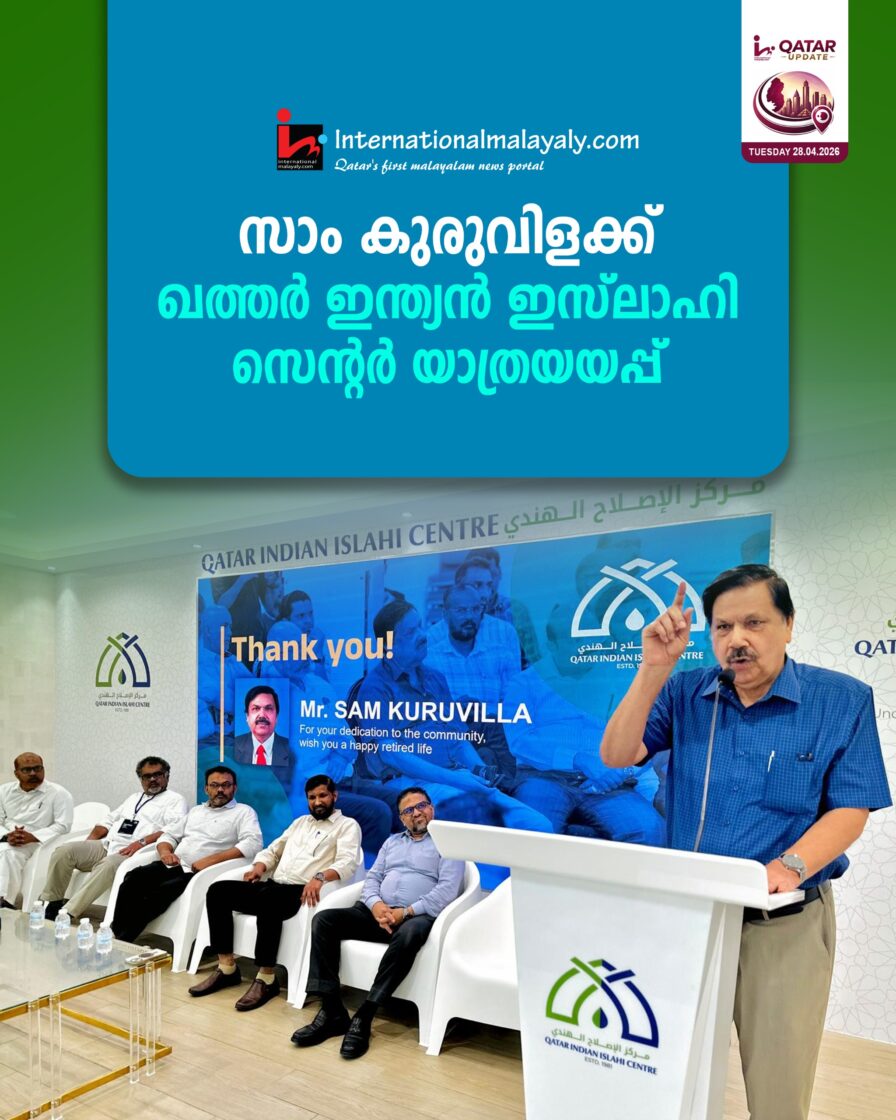 സാം കുരുവിളക്ക് ഖത്തര് ഇന്ത്യന് ഇസ്ലാഹി സെന്റര് യാത്രയയപ്പ്